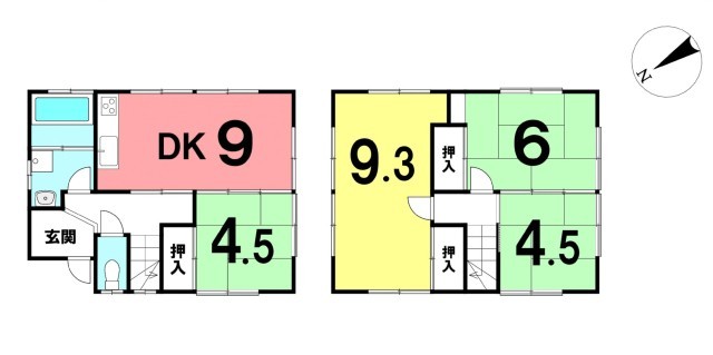 間取り | 2F)9.3洋・6和・4.5和 1F)4.5和・9DK | |||