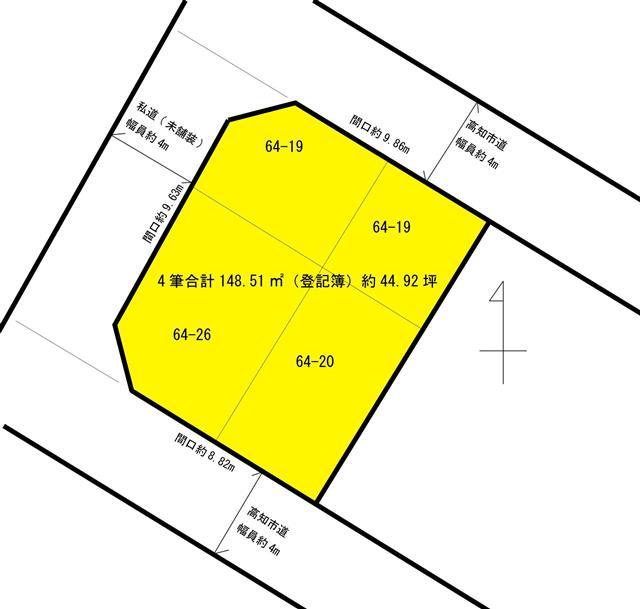 南 | 4m公道に8.8m接道 | 北 | 4m公道に9.8m接道 | |
