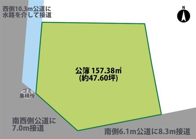 | 南 | 6.1m公道に8.7m接道 | 北 | ||