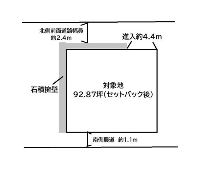 | 南 | 1.1m公道に15m接道 | 北 | 2.4m公道に16m接道 | |