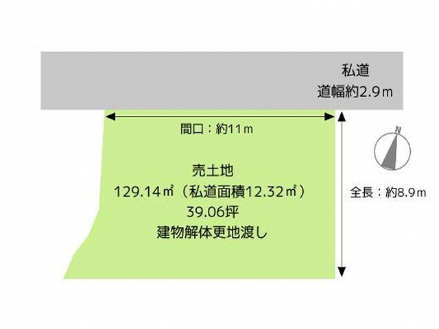 | 南 | 北 | 2.9m私道に11m接道 | ||
