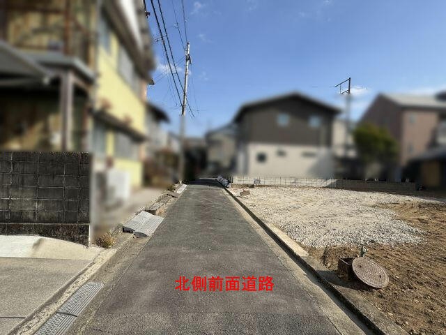 ![]() 東側:北向です。 参考図 | ![]() 現地 | ![]() 北側 前面道路 |
