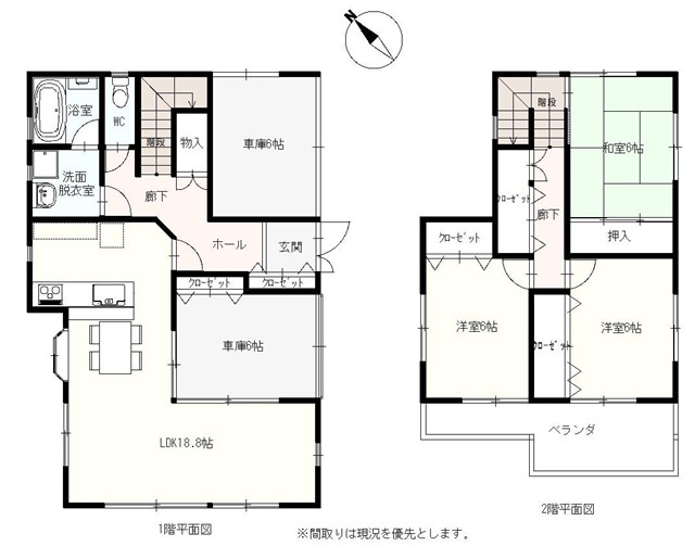 | 間取り | 2F)6洋・6洋・6和・ベランダ 1F)18.8LDK・車庫 | |||