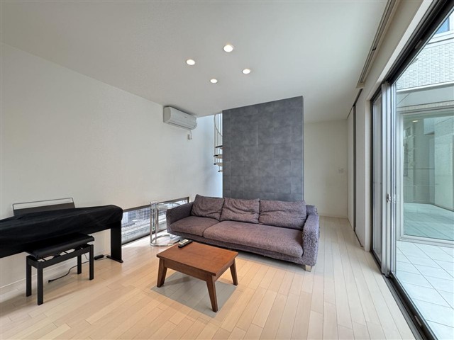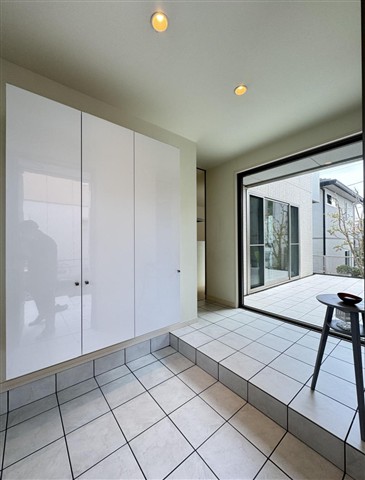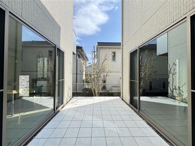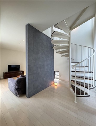 高台の閑静な大型住宅団地:蒔絵台に建つコの字型の間取を採用したホテルライクな空間設計のハウスメーカー施工住宅 住まいの中心に配置された中庭の開放感は「ちょー気持ちいい」 螺旋階段も良き
