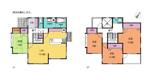 2F)9.8洋・6.5洋・6洋・T・バルコニー×2 1F)6和・19.6LDK |