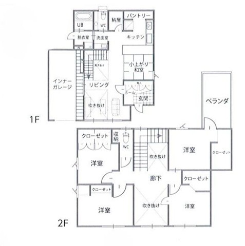 | 間取り | 2F)6洋・6洋・4.5洋・3.7洋・T・ベランダ 1F)3.7和・22.2LDK | |||